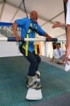 (RJ disabled vet on snowboard, now a TV actor on "All My Children" having a go on the Endless Slope) As an instructor, it was a learning experience of a lifetime. Working outside the box, examining new ways to teach individuals to accomplish controlling a pair of skis or a snowboard with a severe injury or disability. This has given me a greater understanding of skiing and snowboarding which I would not have realized by conventional teaching methods. For me personally, I realize how fortunate I am to have what I have. As I further develop myself as a skier, a snowboarder and as an instructor I have a stronger appreciation of the gift that these sports offer not only to me but to others. The recently injured veterans are overcoming not only physical limitations but mental stress of adjusting to their changed life. This affects not only themselves, but wife and children, relatives, friends, community and society. They shoulder the burden of sacrifice for our freedom to enjoy our way of life in the United States so that we may pursue happiness. So if you see one on the slopes, give them the right of way so they may enjoy the ride. Sam Morishima is a Contributing Editor for Sierra Ski News and Director of the SnoZone Ski & Snowboard School. Sam can be reached at snozone@pacbell.net or visit www.endlesslope.com.